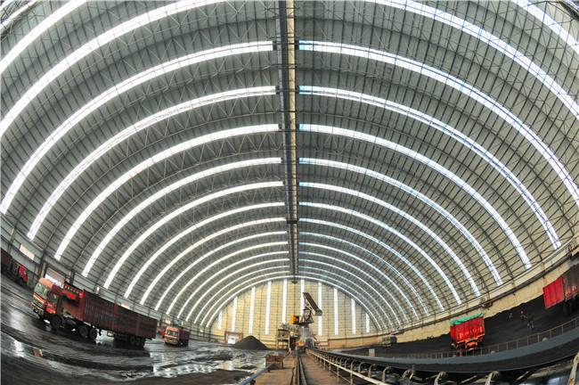 堆场料场封闭式主体结构为新型的钢大兴安岭网架结构,维修结构为钢结构大兴安岭不锈钢板和纤维增强塑料灯具,其外形以大兴安岭网架式和平板为主,连接柱大兴安岭施工自由,设置喷雾自动喷水系统,从而可以实现棚内所有物料的覆盖,减少物料在运输过程中的损耗,起到防尘的作用,减少工厂关闭后的二氧化硫排放量,50mg/m3颗粒排放量小于10mg/m3,非常适合低能耗。低闭库自动感应反应对库存轮胎进行清洁,确保轮胎不受道路污染;封闭的储存区可从源头控制粉尘污染,控制无序排放。